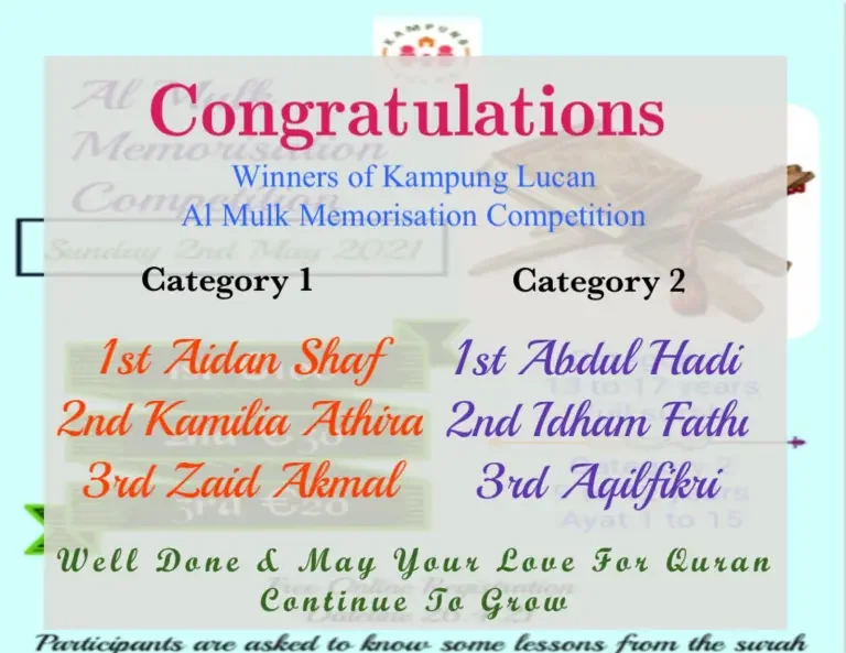 [Announcement] Al-Mulk memorisation Winners 18 May Written By Naz Zaman The winners of the Al-Mulk memorisation competition has been announced! Winners are outlined at the end of this post!Thanks to all of those who participated: Naz Zaman